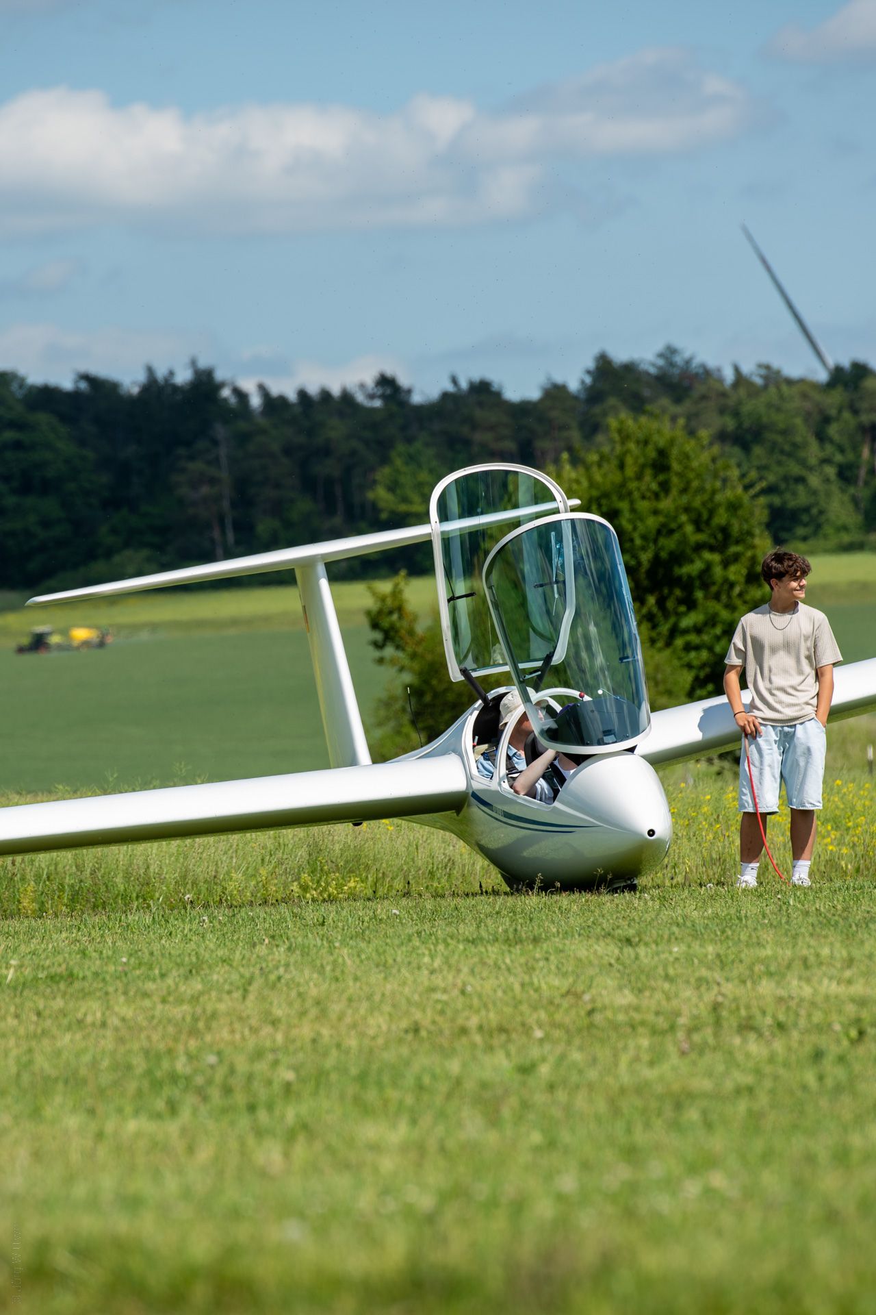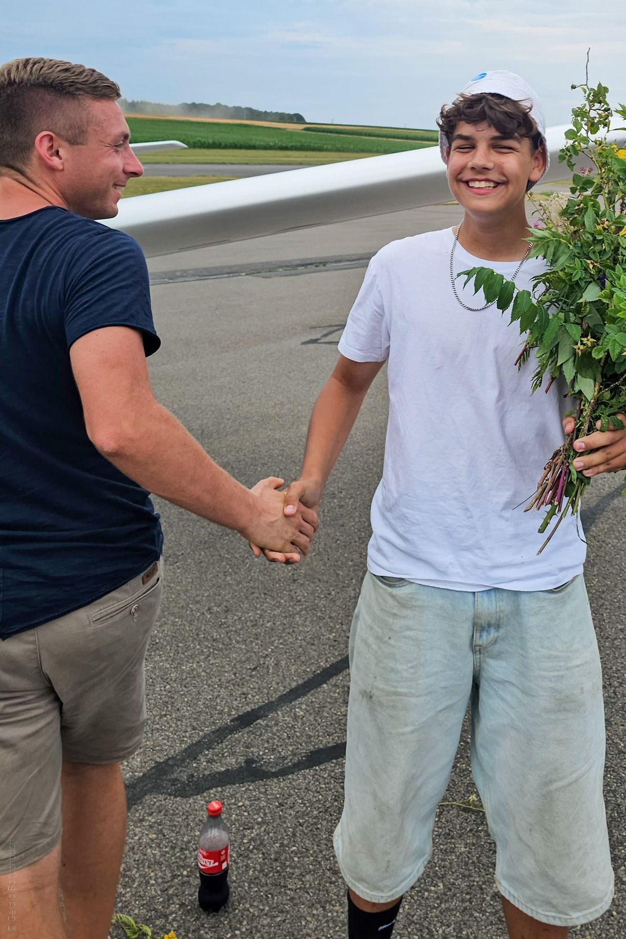 Der Sonntag 20. Juli 2025 wird unserem Flugschüler Ferdi (14) ein Leben lang in Erinnerung bleiben, absolvierte er doch seinen ersten erfolgreichen Alleinflug im Segelflugzeug - "endlich ohne nervigen Fluglehrer hinten drin" wie sein Fluglehrer Wolfgang Kapferer das besondere Ereignis vor den zahlreichen Gratulanten kommentierte.
