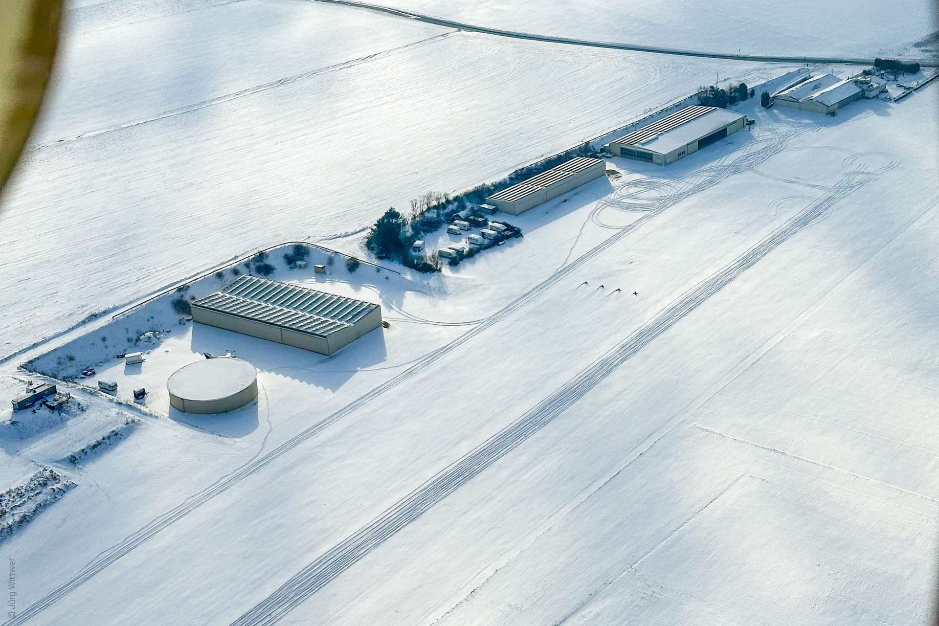 Seit Jahren verfolgen wir die Praxis, den Flugplatz nicht zu räumen, aus folgenden Gründen: Im Gegensatz zu Flughäfen stehen uns keine Schneefräsen zur Verfügung, die ein Räumen und "Wegschleudern" des Schnees ermöglichen. Würden wir stattdessen mit dem Pflug räumen, entstehen Schneewälle, die dann weit über die erste Schneeschmelze hinaus ein Sicherheitsrisiko darstellen.